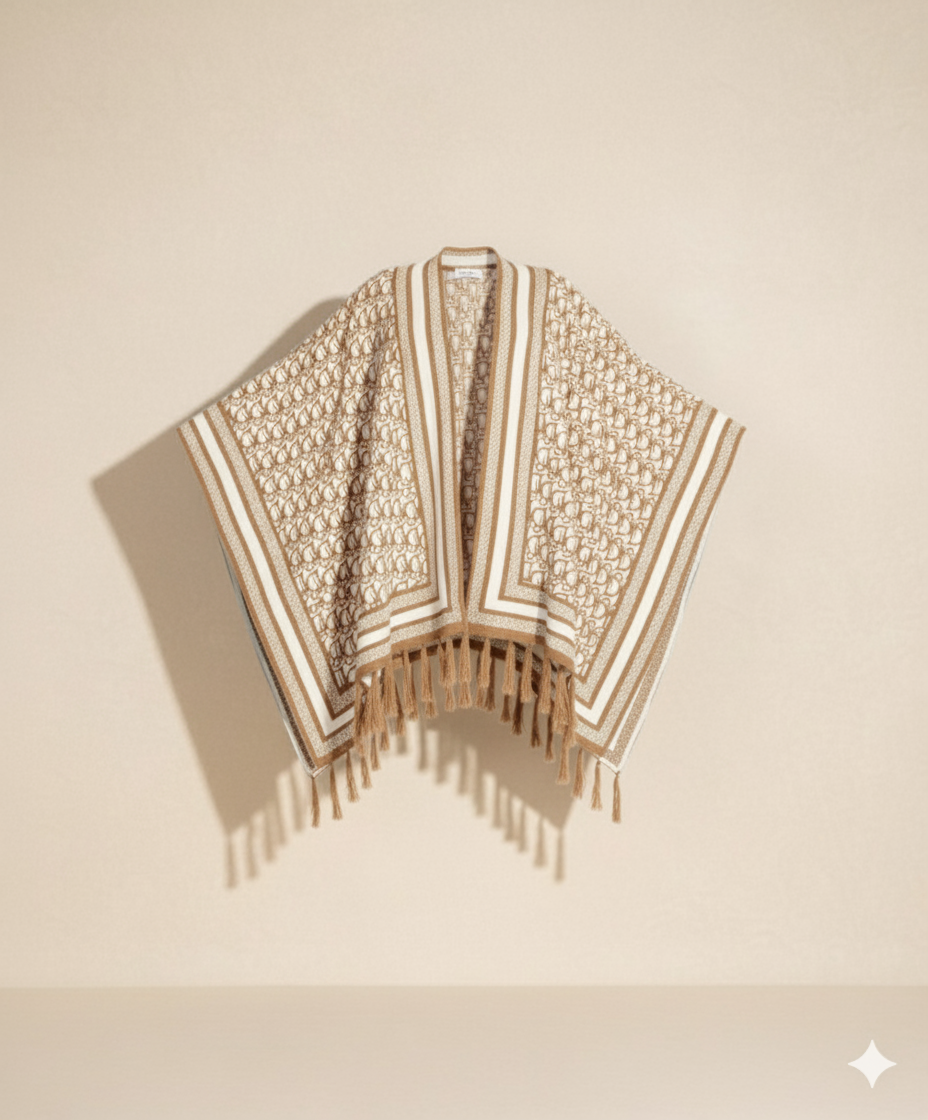 Une cape longue chaude, idéale pour la saison froide. Tissu doux et confortable, avec une allure chic qui complète toutes vos tenues.